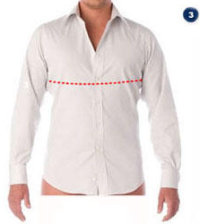 Stati in picioare cu mainile pe langa corp intr-o postura naturala fara sa va umflati pieptul. Apoi masurati in jurul partii celei mai proeminente a toracelui, cu centimetrul paralel cu podeaua, cu un deget intre centimetru si corp. Centimetrul va trece pe sub axile si in jurul pieptului (vezi poza 3). Barbatii cu muschii dorsali foarte dezvoltati se vor masura chiar sub brat, unde dorsalii sunt cei mai lati.