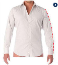 Masurati din punctul unde umarul se intalneste cu gatul - in jos (vezi poza 2). In general, camasa se termina in partea superioara a coapsei, aceasta lungime face ca o camasa sa nu iasa din pantaloni cand va aplecati.