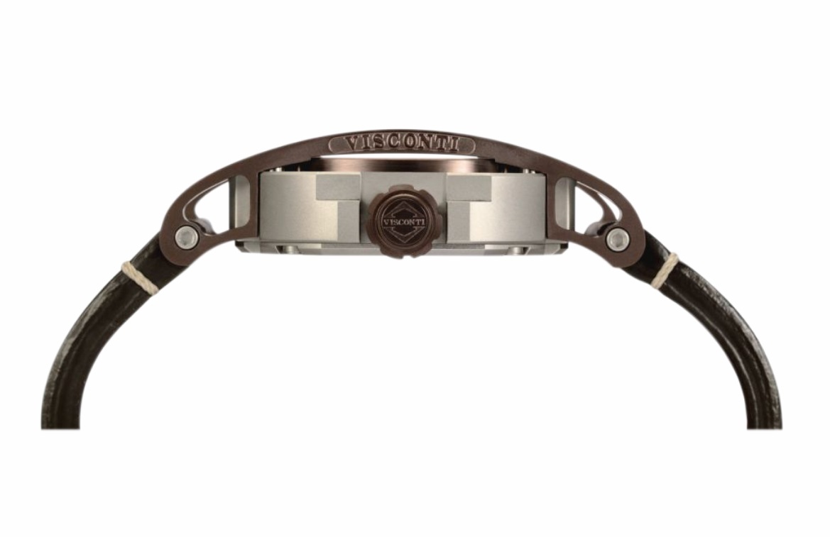 Ambalat intr-o cutie din lemn Visconti, card de garantie, brosura internationala de garantie, brosura de instructiuni, carte de colectie Visconti 2013, curea maro/neagra de rezerva, instrument de schimbare curea.